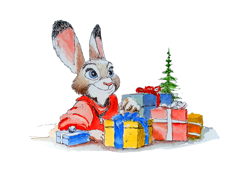 Nick Wilde Christmas - Watercolor and Pen Illustration, giclée print. Decorate your house or children's room with the spirit of the season. Print's will not fade for generations. Collect this unique illustration. Printed by the artist on 100% cotton cold press heavyweight paper. The surface has a slight texture like fine art watercolor paper. This OBA-free paper is museum quality. Prints available in 9x12, or 13x19, and matted and framed prints available for local pickup.