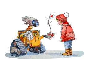 Wall-e Christmas Gift - Pen and Watercolor Illustration, giclée print. Decorate your house or children's room with the spirit of the season. Print's will not fade for generations. Collect this unique illustration. Printed by the artist on 100% cotton cold press heavyweight paper. The surface has a slight texture like fine art watercolor paper. This OBA-free paper is museum quality. Prints available in 9x12, or 13x19, and matted and framed prints available for local pickup.